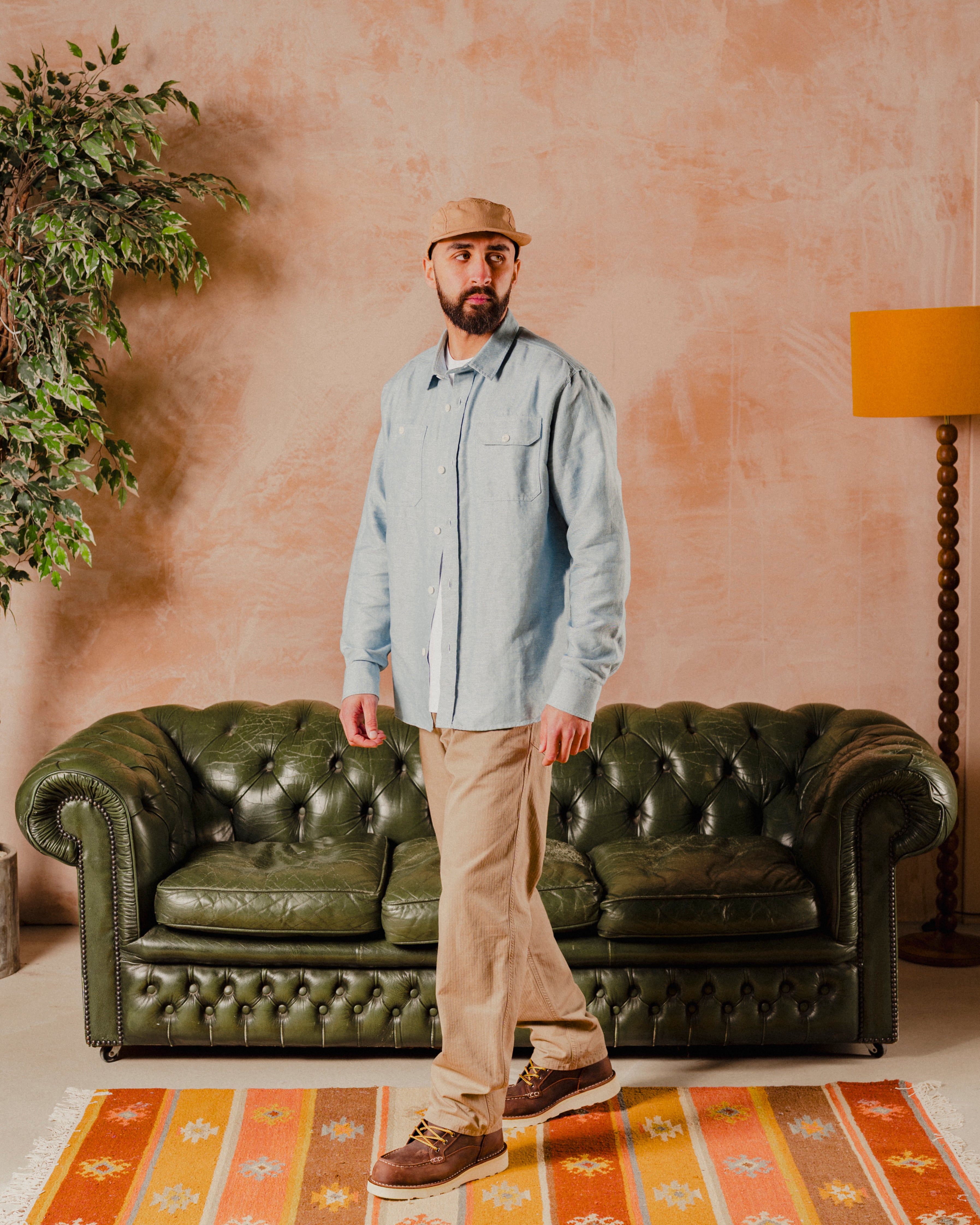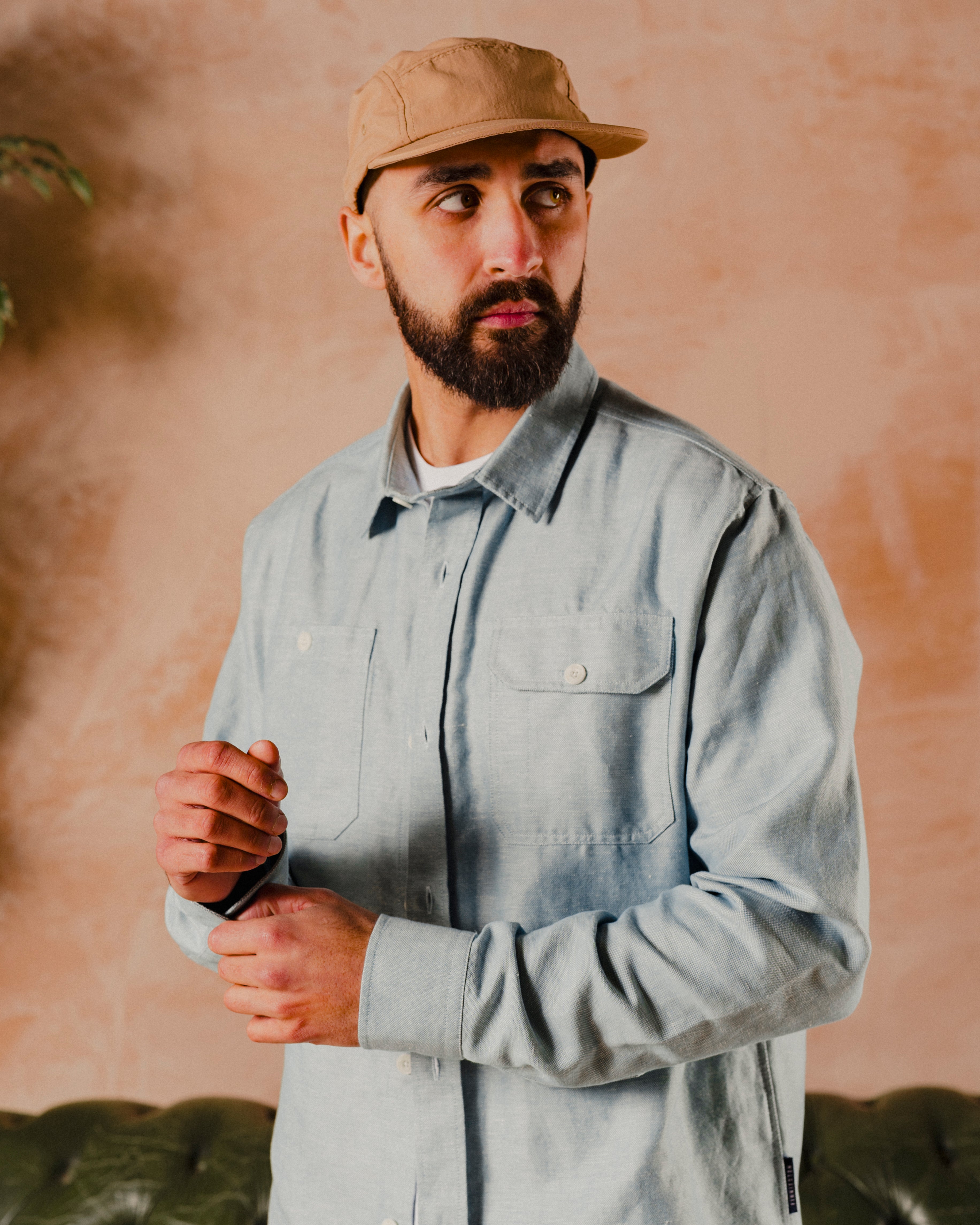 The Anderston Over Shirt in Light Blue. A smart twist on our usually more utilitarian looking style, this versatile piece can be worn on its own or as an Outerwear alternative during the warmer months.