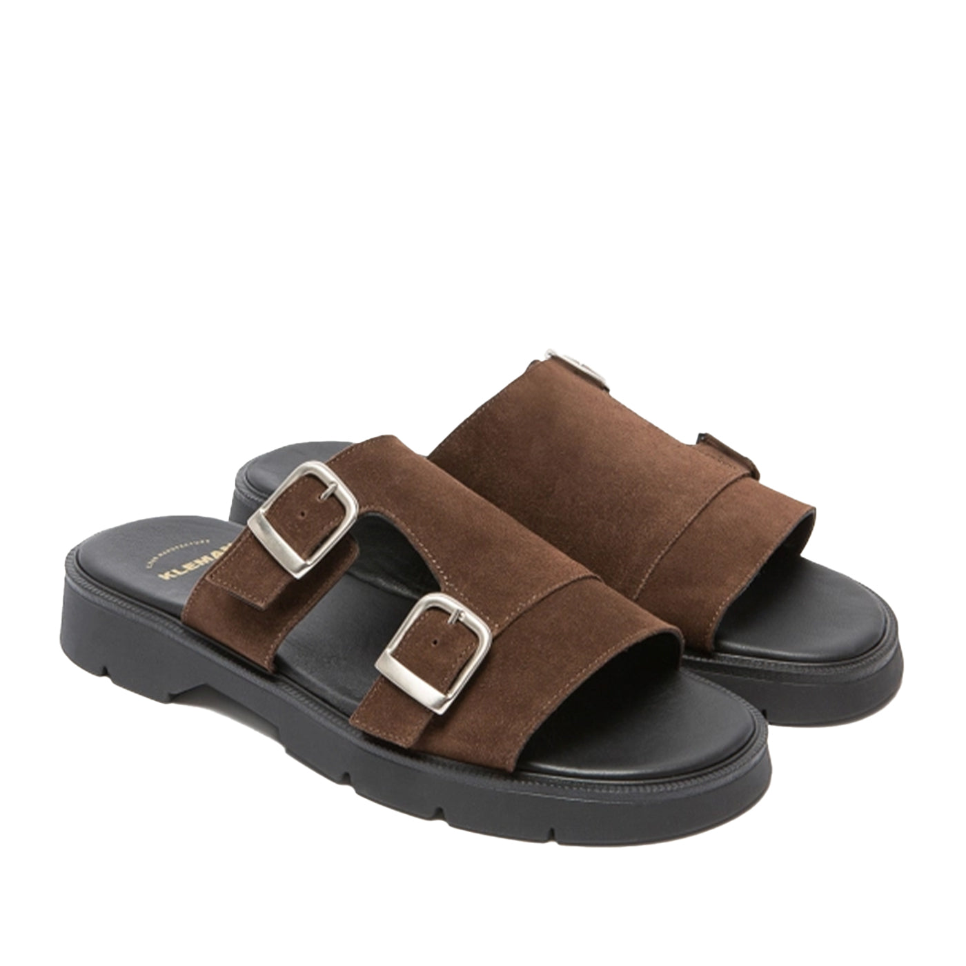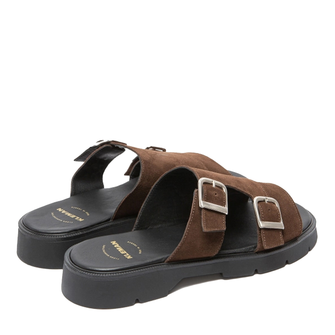 The Hublot V by Kleman is a suede, double buckle sandal. With a 20% recycled rubber sole, contrasting stitching and leather lining these chunky heel sandals are perfect for your casual outfits.