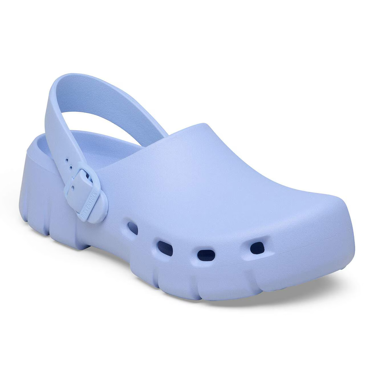 The BIRKENSTOCK Birki Flow is a veritable classic that can easily be worn all year round. The large air inlets in the clog keep the foot climate permanently fresh. Modeled on the cork sandal, it is made from the ultra lightweight and highly flexible synthetic material EVA. The high-quality, odor-neutral EVA has been tested for harmful substances and combines numerous positive attributes: it is highly fashionable, light, highly elastic, waterproof, and skin-friendly.