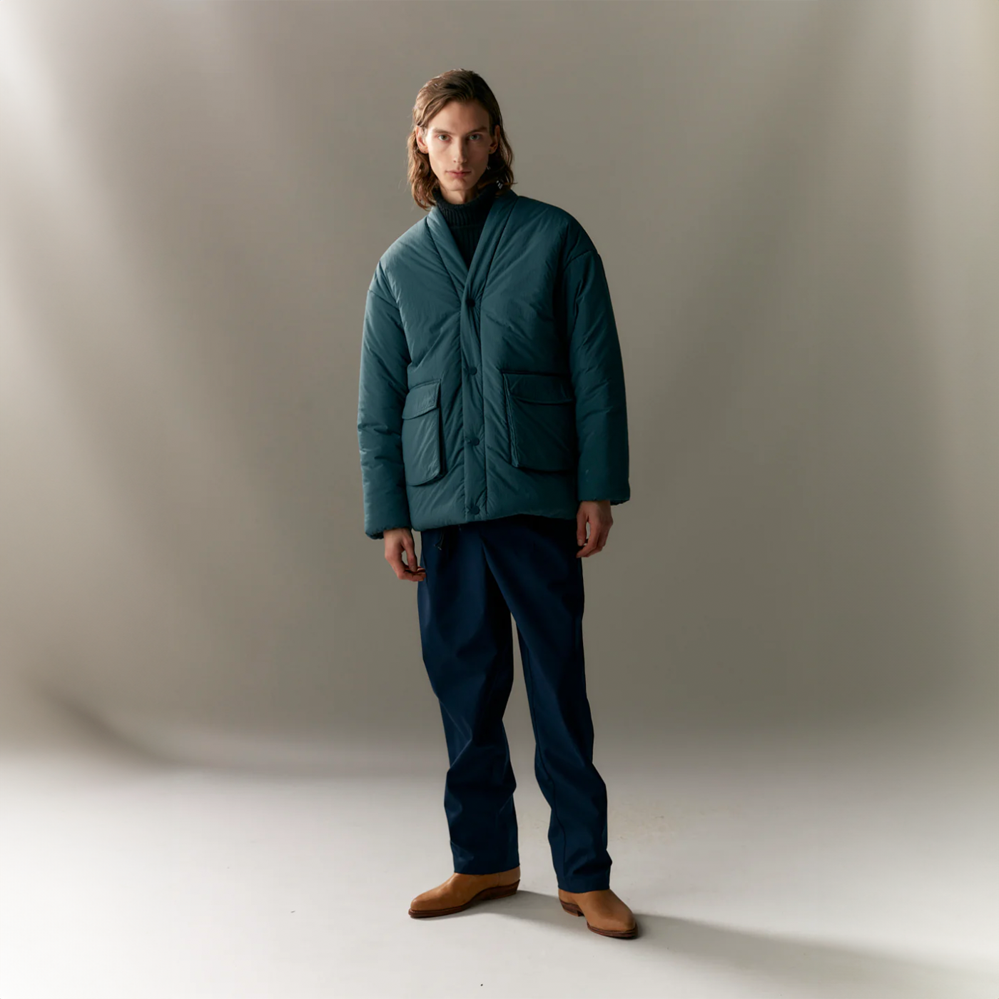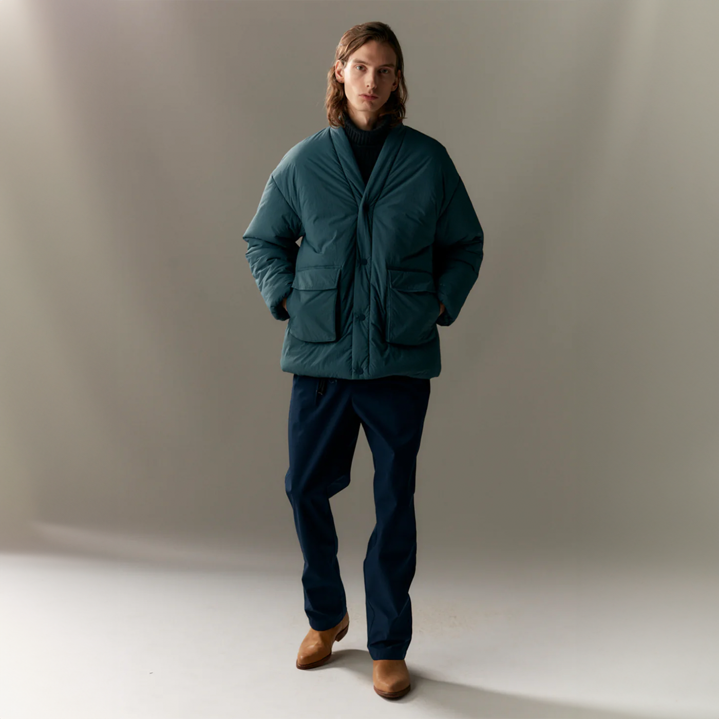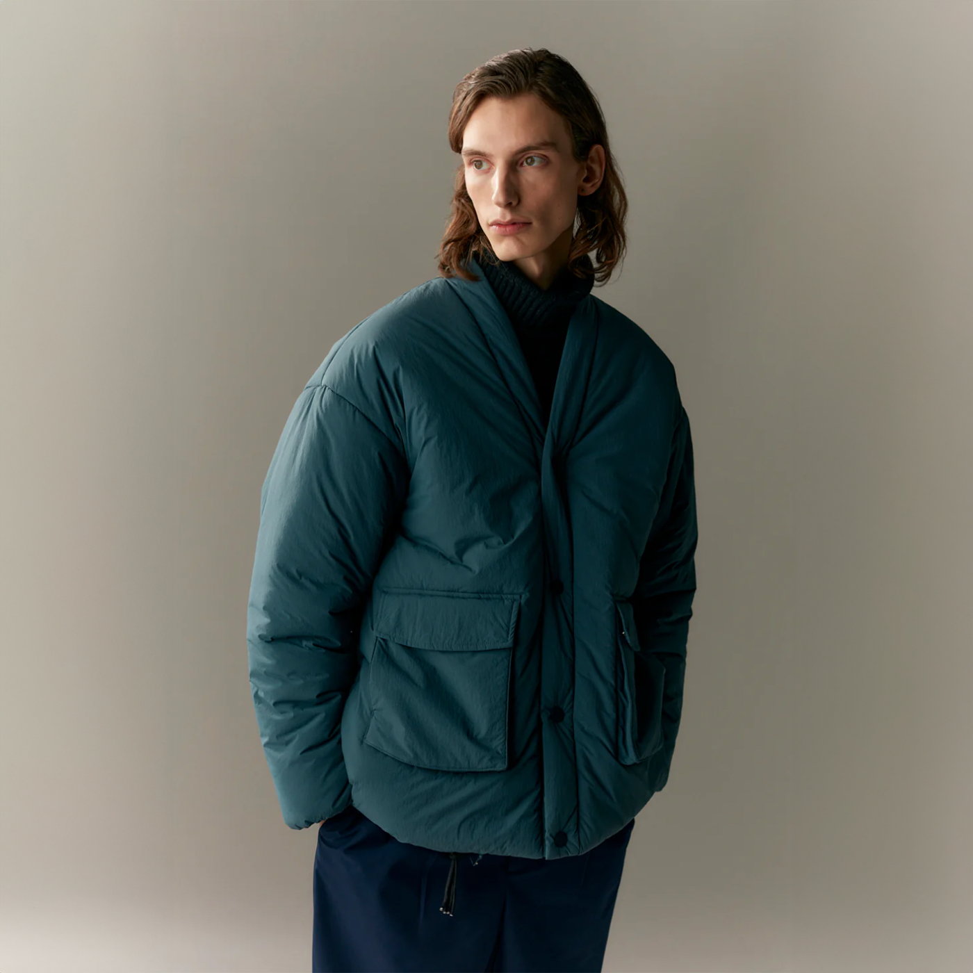 Presenting the updated version of last season's Bulky Buck, now returning in a crinkled nylon with a water repellency of 5,000 mm. This Japanese-inspired cut boasts an oversized fit designed for both men and women. The insulation remains faithful to Welter Shelter's sustainable ethos, utilizing recycled polyester.