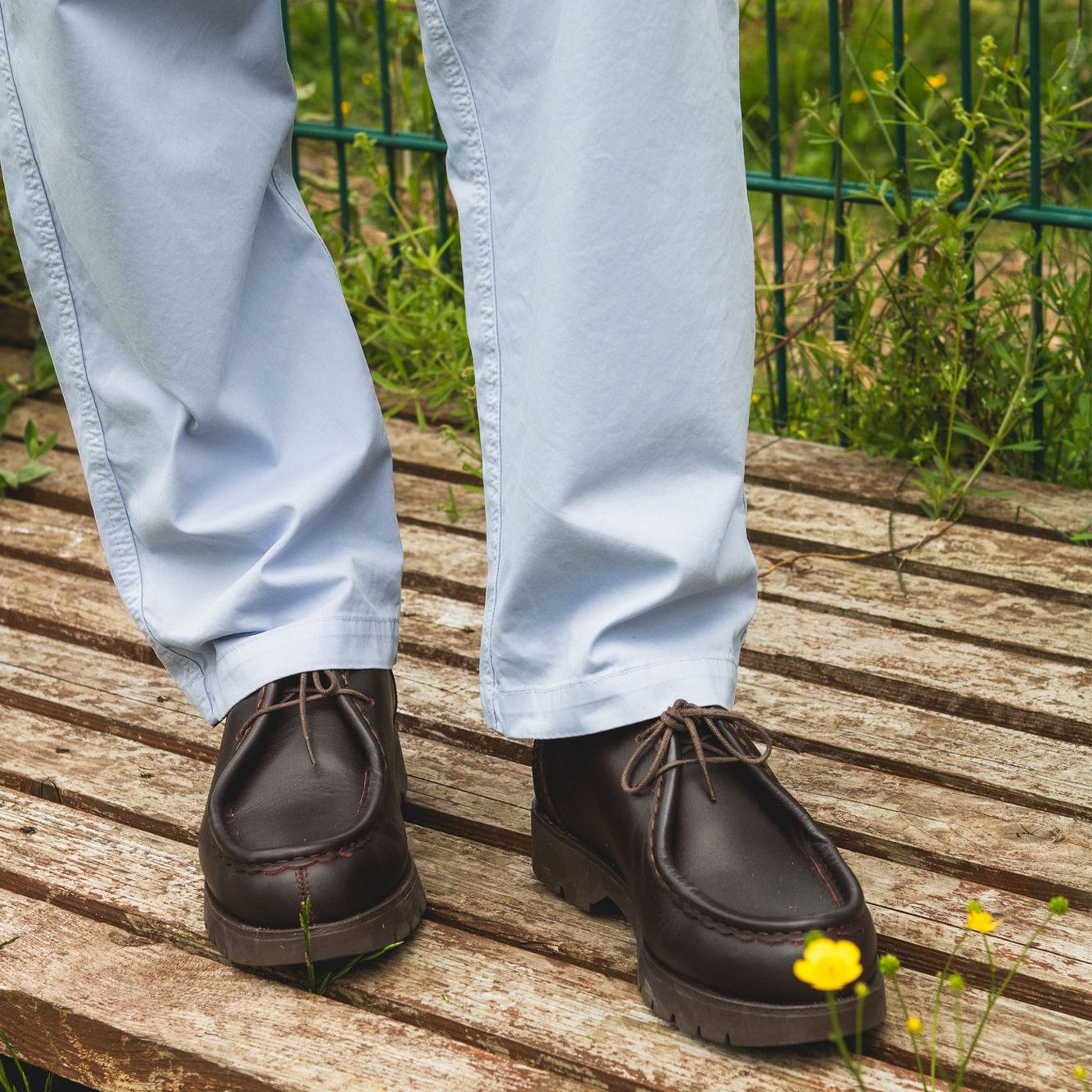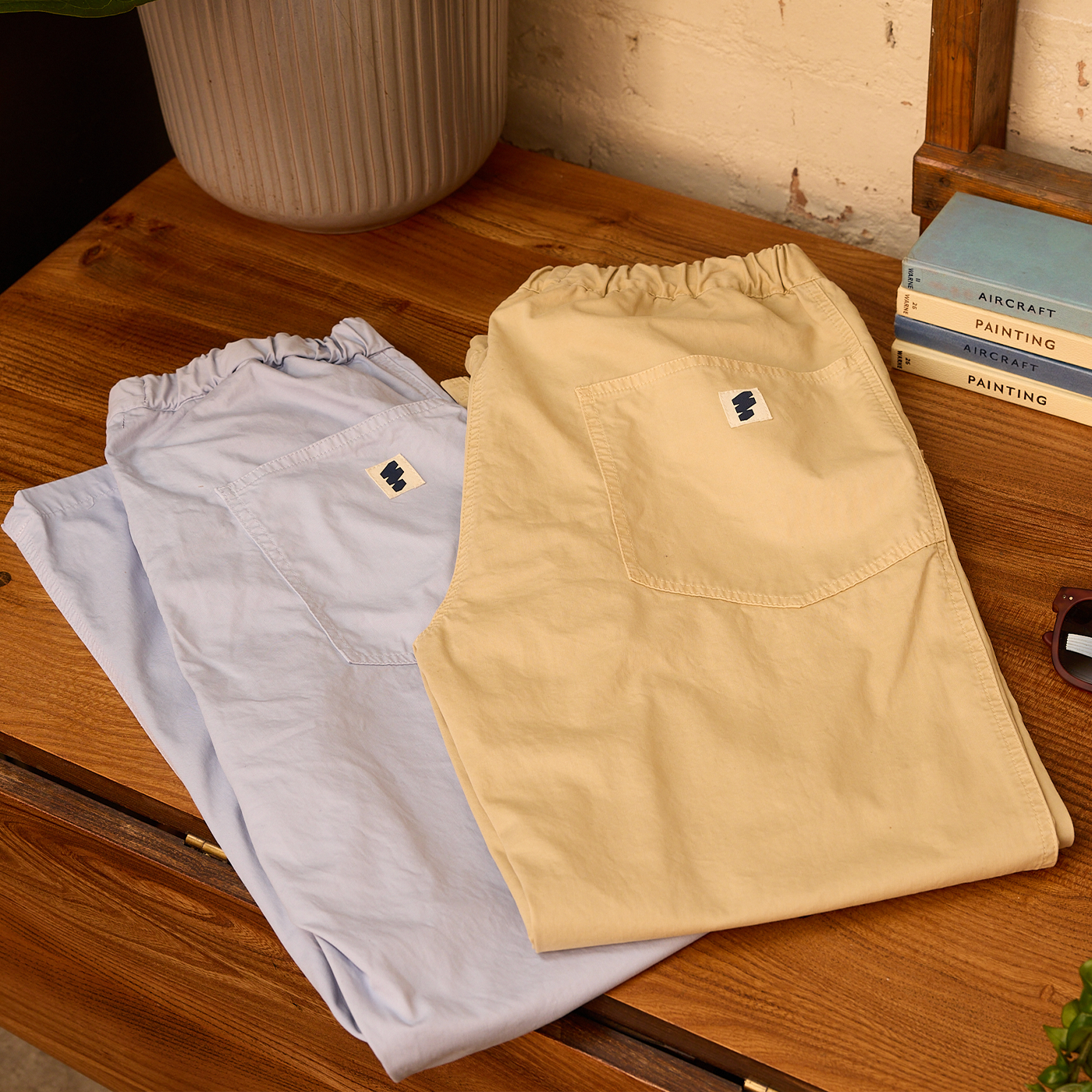 The Otago Work Pant in a durable Organic Cotton. The Otago is a loose fitting pant for maximum manoeuvrability and comfort. Elasticated waistband helps when looking for a more relaxed fit, drawstring for when you need them to stay put. Deep side entry and rear pockets finished with signature Finnieston contrast stitching.